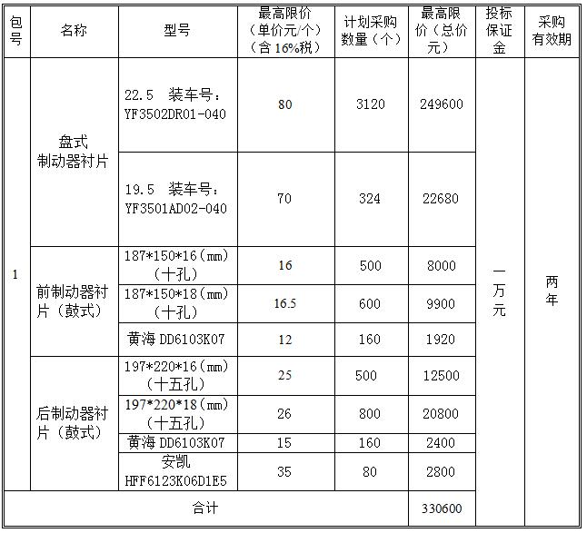 (1)車用制動(dòng)器襯片的技術(shù)參數(shù)要求按《GB5763-2008汽車用制動(dòng)器襯片》執(zhí)行; (2)帶緩速器的鼓式制動(dòng)器襯片行駛里程應(yīng)大于6萬(wàn)公里,盤式制動(dòng)器襯片應(yīng)大于6萬(wàn)公里。 (3)投標(biāo)人須提供投標(biāo)產(chǎn)品由國(guó)家權(quán)威部門、國(guó)家認(rèn)可實(shí)驗(yàn)室或具有資質(zhì)的第三方實(shí)驗(yàn)室出具的質(zhì)檢報(bào)告(其中,國(guó)家認(rèn)可實(shí)驗(yàn)室證書、具有資質(zhì)的第三方實(shí)驗(yàn)室證書也需一并附在響應(yīng)文件中)。 3.包裝要求 制動(dòng)器襯片要求有完好的包裝,要適用于長(zhǎng)途運(yùn)輸和多次搬運(yùn)并具有一定的防腐和防潮等措施,以保證制動(dòng)器襯片的質(zhì)量。 4.項(xiàng)目說(shuō)明 (1)本項(xiàng)目采購(gòu)內(nèi)容共1個(gè)合同包,投標(biāo)人對(duì)所投包的采購(gòu)內(nèi)容必須全投; (2)總報(bào)價(jià)不能超過(guò)總價(jià)最高限價(jià),否則總報(bào)價(jià)按總價(jià)最高限價(jià)處理。每個(gè)型號(hào)的報(bào)價(jià)不能超過(guò)該型號(hào)采購(gòu)單價(jià)最高限價(jià),否則報(bào)價(jià)按單價(jià)最高限價(jià)處理。 二、合格投標(biāo)人的資格條件 投標(biāo)人應(yīng)具有以下資歷: 1.具有獨(dú)立法人資格、良好的信譽(yù),獨(dú)立履行合同能力和一定的資金墊付能力。 2.投標(biāo)人必須為投標(biāo)產(chǎn)品的生產(chǎn)廠家或生產(chǎn)廠家正式授權(quán)的代理商。 3.公交車用制動(dòng)器襯片的生產(chǎn)企業(yè)必須通過(guò)ISO9001:2008或ISO9001:2015或ISO/TS16949質(zhì)量體系認(rèn)證。 4.公交車用制動(dòng)器襯片須近三年被地市級(jí)公交企業(yè)批量使用(500個(gè)以上)或?yàn)榭蛙噺S批量配套(500個(gè)以上),提供合同和結(jié)賬發(fā)票復(fù)印件。 5.符合《中華人民共和國(guó)政府采購(gòu)法》第二十二條規(guī)定應(yīng)當(dāng)具備的條件。 6.應(yīng)自覺(jué)抵制采購(gòu)領(lǐng)域商業(yè)賄賂行為。 7.能夠提供快速、良好的售后服務(wù)。 8.投標(biāo)人所投產(chǎn)品須為正品行貨。 9.投標(biāo)人未被最高人民法院在“信用中國(guó)”網(wǎng)(www.creditchina.gov.cn)中列入失信被執(zhí)行人名單。 三、報(bào)名須知 有意向參與本次采購(gòu)的供應(yīng)商可于2019年 1月23日至1月30日(節(jié)假日除外)到招標(biāo)辦公室(鞍山市鐵西區(qū)八家子街2號(hào),物資供應(yīng)分公司會(huì)議室)報(bào)名。 報(bào)名時(shí)需攜帶以下文件: 1.營(yíng)業(yè)執(zhí)照副本復(fù)印件并加蓋投標(biāo)人公章。 2.代理商須出具生產(chǎn)廠家頒發(fā)的代理授權(quán)書復(fù)印件并加蓋投標(biāo)人公章。 3.所投產(chǎn)品的“ISO9001:2008”或“ISO9001:2015”或“ISO/TS16949”質(zhì)量體系認(rèn)證證書復(fù)印件并加蓋投標(biāo)人公章。 4.公交車用制動(dòng)器襯片近三年被地市級(jí)公交企業(yè)批量使用(500個(gè)以上)或?yàn)榭蛙噺S批量配套(500個(gè)以上)的合同和結(jié)賬發(fā)票復(fù)印件加蓋投標(biāo)人公章。 5.投標(biāo)產(chǎn)品由國(guó)家權(quán)威部門、國(guó)家認(rèn)可實(shí)驗(yàn)室或具有資質(zhì)的第三方實(shí)驗(yàn)室出具的產(chǎn)品質(zhì)量符合國(guó)家標(biāo)準(zhǔn)的質(zhì)檢報(bào)告(其中,國(guó)家認(rèn)可實(shí)驗(yàn)室證書、具有資質(zhì)的第三方實(shí)驗(yàn)室證書也需提供)。 四、資格審查 本項(xiàng)目投標(biāo)人的資格條件在評(píng)審時(shí)由談判小組的資質(zhì)評(píng)審專家進(jìn)行審查。投標(biāo)人應(yīng)在響應(yīng)文件中按采購(gòu)文件的規(guī)定和要求附上資格證明文件,若提供的資格證明文件不全或不實(shí),將導(dǎo)致其響應(yīng)無(wú)效或投標(biāo)人資格被取消。 五、遞交響應(yīng)文件截止時(shí)間、開標(biāo)時(shí)間及開標(biāo)地點(diǎn) 遞交響應(yīng)文件截止及開標(biāo)時(shí)間:1月31日早8:30 遞交響應(yīng)文件及開標(biāo)地點(diǎn):鞍山市交通運(yùn)輸集團(tuán)有限公司14樓會(huì)議室,屆時(shí)請(qǐng)投標(biāo)人的法定代表人或其授權(quán)代表按時(shí)參加采購(gòu)會(huì)議。 投標(biāo)人當(dāng)天需提前十五分鐘到開標(biāo)地點(diǎn)繳納投標(biāo)保證金。采購(gòu)會(huì)議開始前五分鐘停止收取保證金,過(guò)時(shí)一概不予收取。 六、響應(yīng)文件的送達(dá) 響應(yīng)文件必須在遞交響應(yīng)文件截止時(shí)間前送達(dá)開標(biāo)地點(diǎn),逾期送達(dá)或密封和標(biāo)注不符合采購(gòu)文件規(guī)定的響應(yīng)文件恕不接受。本次采購(gòu)不接受郵寄的響應(yīng)文件。 七、采購(gòu)單位、地址和聯(lián)系方式 采購(gòu)單位:鞍山市交通運(yùn)輸集團(tuán)有限公司 地 址:鞍山市鐵東區(qū)民生東路1號(hào) 聯(lián) 系 人:陳瑩 聯(lián)系電話:0412-5600945 手 機(jī): 15241271775 |