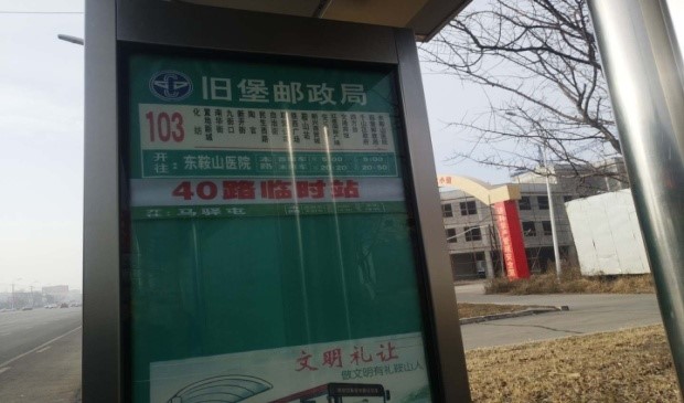 40線站序:明達(dá)世紀(jì)花園 – 鞍山人才市場(chǎng)-米蘭小區(qū) –匯園大道 – 莘英路-長(zhǎng)興街 - 鐵東區(qū)法院- 新營(yíng)廣場(chǎng) – 解放東路- 園林大道- 中華南路 - 榮譽(yù)街 - 新華園 - 交通賓館 - 千山區(qū)政府 – 舊堡郵政局(臨時(shí)站)-舊堡 - 千山區(qū)委--馬驛屯